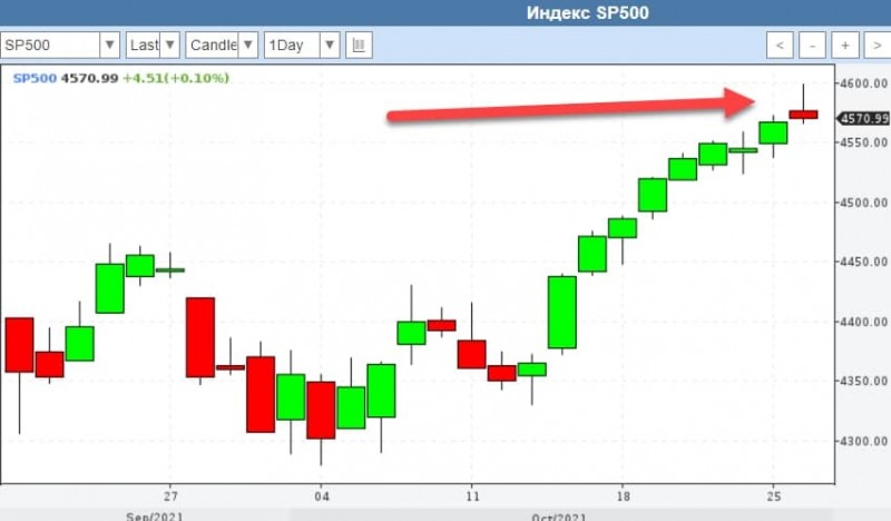 Из интересного по техническому анализу у нас попытка сформировать вчера разворот на американских индексах. Разворотная свеча на хаях после 9 растущих сессий подряд выглядит интересно, особенно учитывая что завтра у нас будет заседание ЕЦБ.
